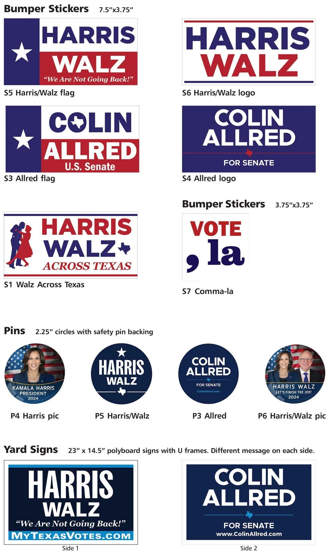 Email info@pcdwa.org to order at wholesale prices until September 7 from the Texas Democratic Party!