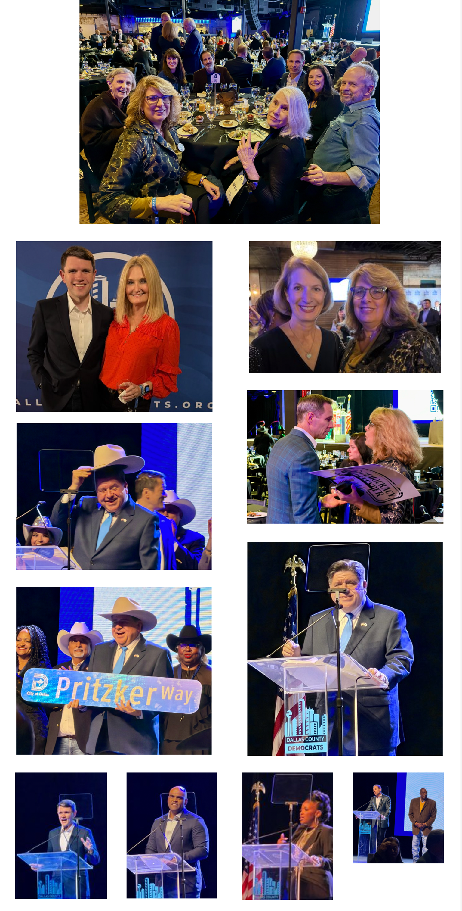 For those who may not be deeply embedded with Dallas County Democratic politics, the annual JJ Dinner is a huge fundraiser supporting the DCDP. Featuring Boots and Bling at Gilley’s, politicians from across the state - and honorary Texans, as well - came by to address the crowd and celebrate all things Democrat. This year’s keynote speaker was JB Pritzker, the Illinois Governor who stepped up to support our quorum breakers during the Abbot/Trump mid-decade redistricting push. In gratitude, he was presented with a “Pritzker Way” Dallas street sign and his first-ever cowboy hat!