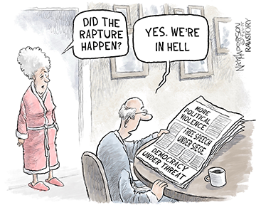 Of course, the most optimism comes from that great media prophet, Dan Greaney (writer of the Simpsons episode that predicted a President Donald Trump in 2000), who predicts a spectacular MAGA downfall before the end of the year!